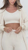 Ucuz sentetikler gibi sizi terletip bunaltmaz; pamuklu pijamalar gibi üzerinizde ağırlaşmaz. Hava kanallı örgü yapısı, vücut ısınızı dengeler. Kışın hırkasıyla sıcacık bir koza, bahar akşamlarında ise crop-top ve şortuyla ferah bir konfor sunar. Tek ürünle üç mevsim lüks.
